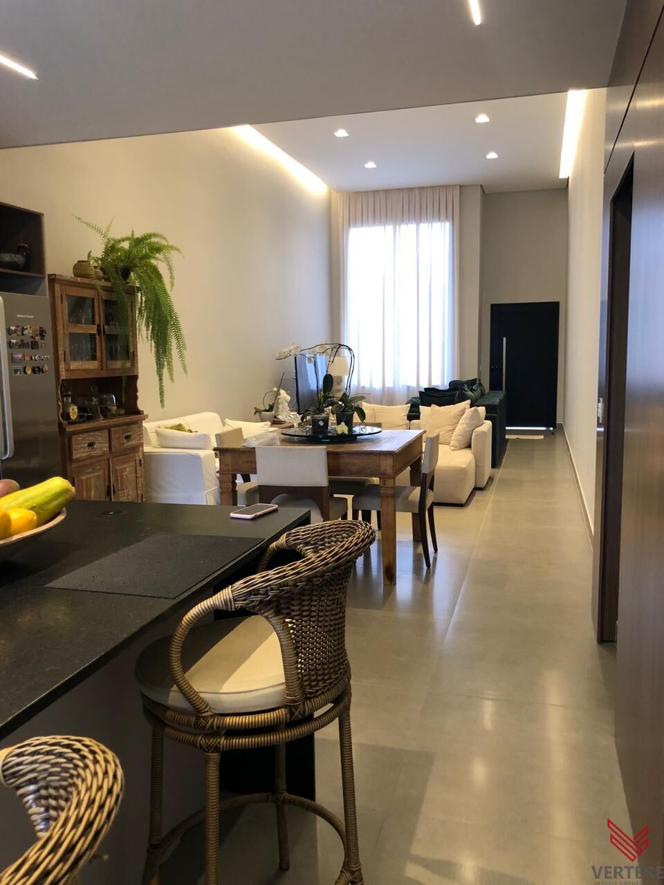- Sala (c/cortineiro e cortina instalada) e sala de jantar com pé direito alto e espera para ar condicionado;